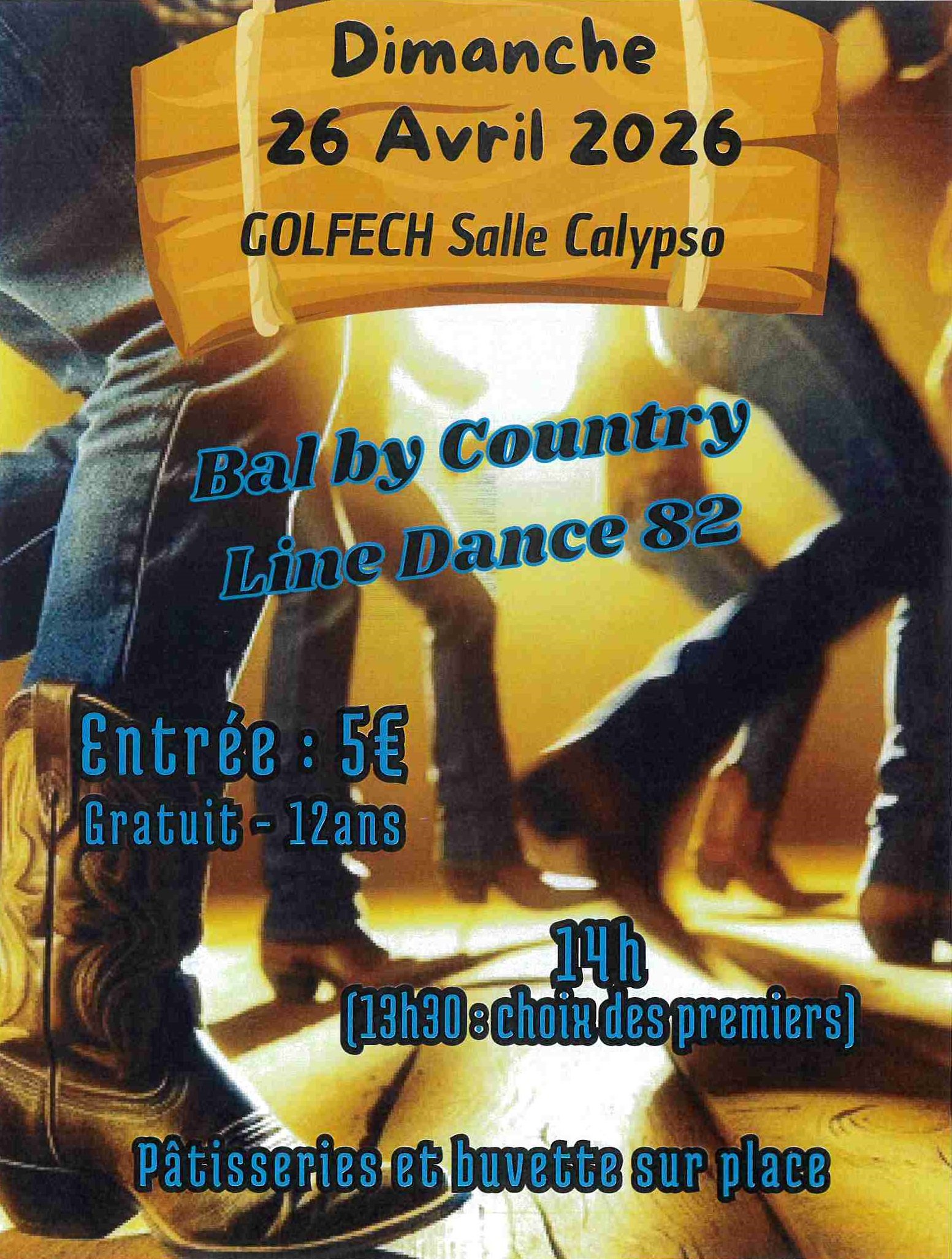 Venez taper des pieds pour danser sur de la country avec le Bal De la Country le 26 avril 2026 à la salle Calypso à partir de 14h00.