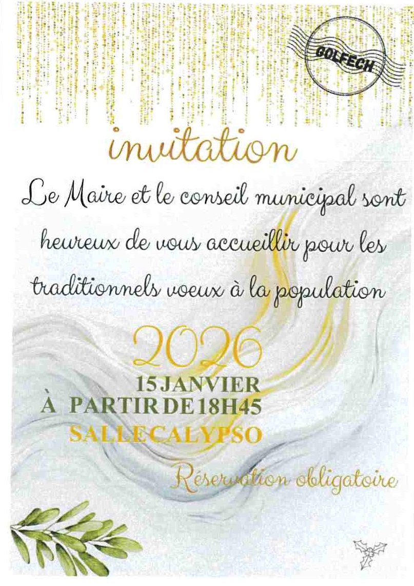 Le Maire et le Conseil Municipal sont heureux de vous accueillir pour les traditionnels vœux à la population.
